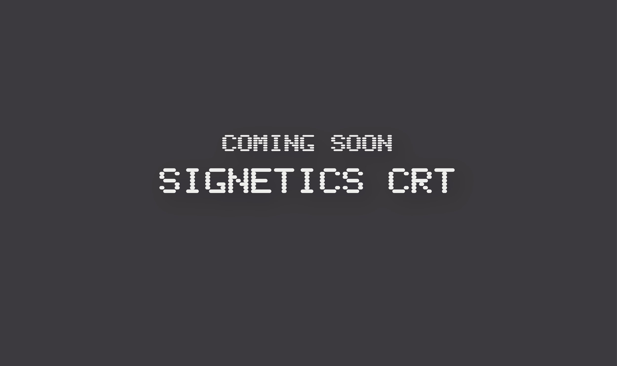 Signetics CRT is a typeface built from the classic bitmap letterforms of the Signetics 2513 character generator, as seen on a vintage cathode-ray-tube screen. Signetics was a prominent semiconductor manufacturer in Sunnyvale, California, from the 1960s through the 1980s. Their 2513 character ROM chip, introduced in the early 1970s, was a common off-the-shelf part used in some iconic early computers and other systems with text displays. These are the letters of the Apple-1, the Apple II, early Atari arcade games, and the “TV Typewriters.”